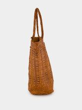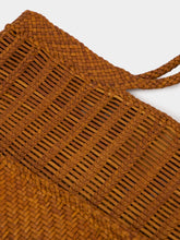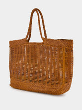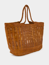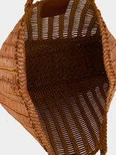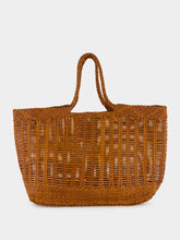 This handcrafted camel leather tote by Dragon Diffusion is a perfect blend of rustic charm and sophistication. Made from 100% buffalo calf leather, this tote features a unique open-weave "window" design, creating a spacious and breathable structure ideal for warm-weather outings. Its handwoven texture showcases expert craftsmanship, adding an artisanal touch to any ensemble. Lightweight yet durable, this tote is designed with sturdy handles for effortless carrying, making it an essential accessory for casual elegance.