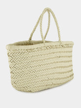 This classic tote, with its pearl-hued chevron weave, is a testament to timeless style and artisanal skill. Each bag is handwoven from smooth buffalo calf leather, unlined and designed with an open top to honor traditional craftsmanship. A discreet St. Christopher medal charm sewn inside signifies the luxury and journey of this iconic piece, making it an indispensable accessory for the discerning collector.
