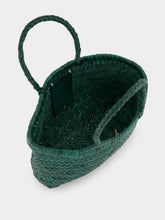 The "Mini Flat Gora" in forest green is a signature piece, handwoven from supple buffalo calf leather. Its compact size and lightweight structure make it perfect for essential carry, while the intricate basket weave and subtle top twist lend it a distinctive elegance. An ideal everyday companion with effortless charm. Finished with a hand-sewn St. Christopher medal, symbol of Dragon Diffusion’s artisanal authenticity.
