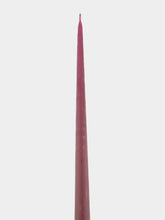 Taper 42 cm candle in aubergine color made of 100% pure fragrance-free paraffin wax. The foot of the candle is conical in shape, which means that the candle fits most candle holders.