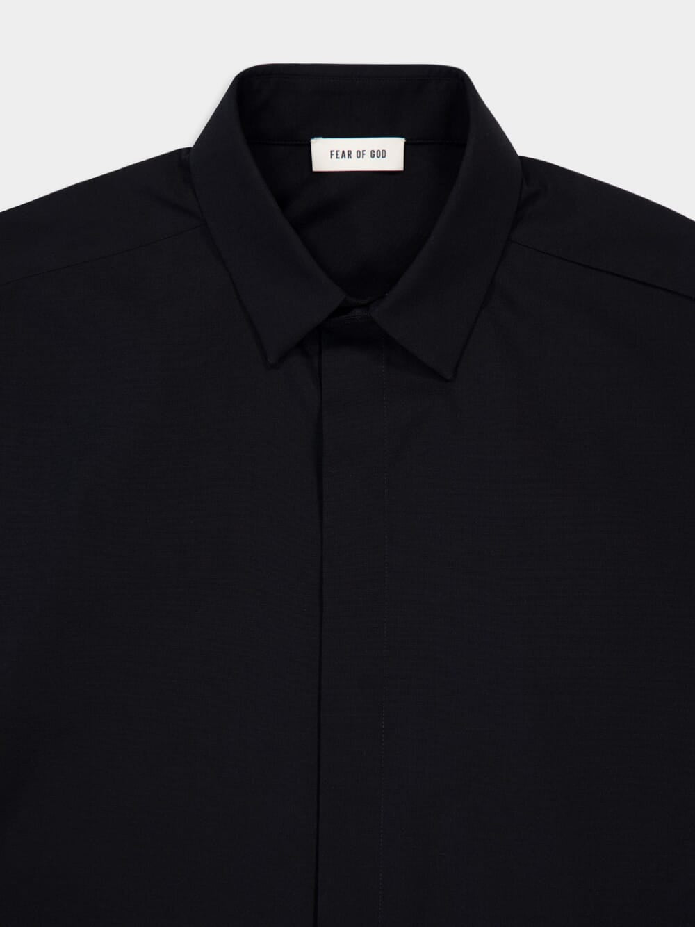 The Black Oxford Short Sleeve Shirt by Fear of God is a refined reimagining of a classic, crafted in Italy from a luxurious virgin wool-cotton blend with a hint of elastane for comfort and stretch. Featuring a point collar and minimalist covered placket with horn buttons, it offers a sleek, tailored silhouette. A discreet Fear of God label at the back collar adds a signature finish. A timeless piece with elevated structure and modern minimalism.