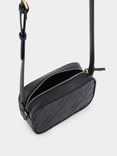 Camara Case Mini-Bag, crafted from premium black leather adorned with a striking three-dimensional texture FF motif. The zip fastening ensures easy access to your belongings, while the lined interior with a pocket keeps you organized. The bag is enhanced with gold-finish metalware for an extra touch of luxury. Versatile and functional, it can be effortlessly worn on the shoulder or cross-body, thanks to the adjustable and detachable shoulder strap.