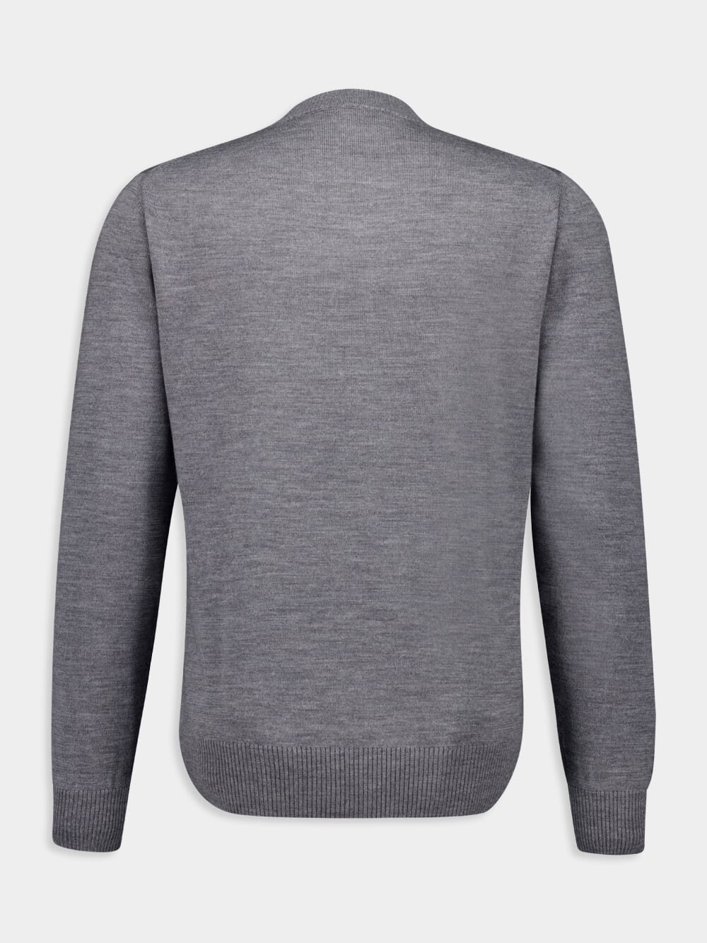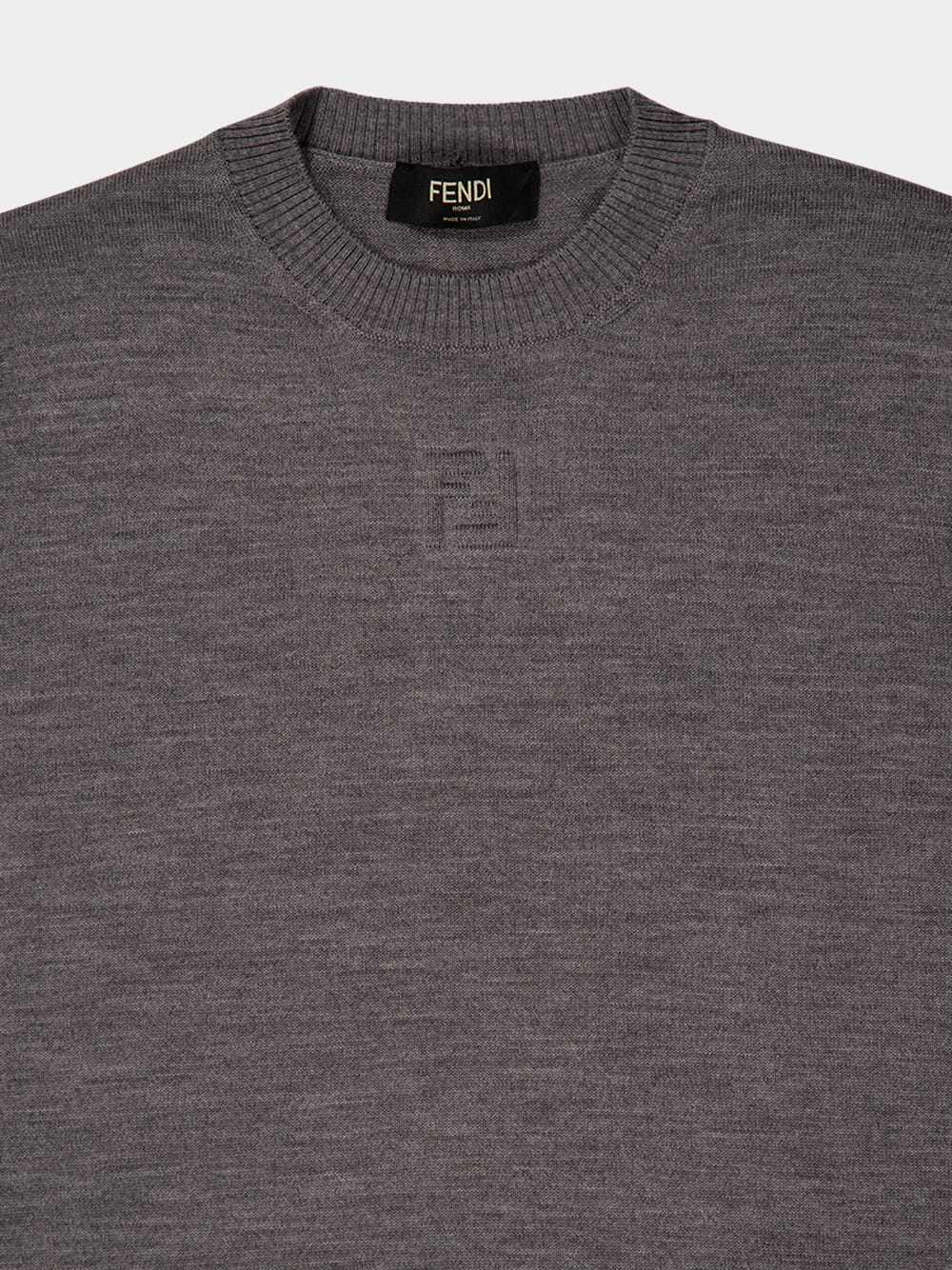 This light grey wool jumper combines understated luxury with versatile style. Crafted in Italy from premium wool, it features a classic crew neck and regular fit, enhanced by ribbed edges for added refinement. The front is subtly adorned with an embossed FF logo, offering a discreet nod to Fendi’s iconic branding. Perfect for elevating casual ensembles with a touch of sophistication.