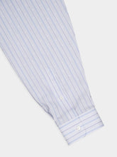 A luxurious blend of silk and cotton defines this light blue striped shirt. The fine lines exude a classic charm, while the soft fabric ensures comfort and breathability. Tailored for a sophisticated silhouette, it's a versatile addition to both formal and casual collections.