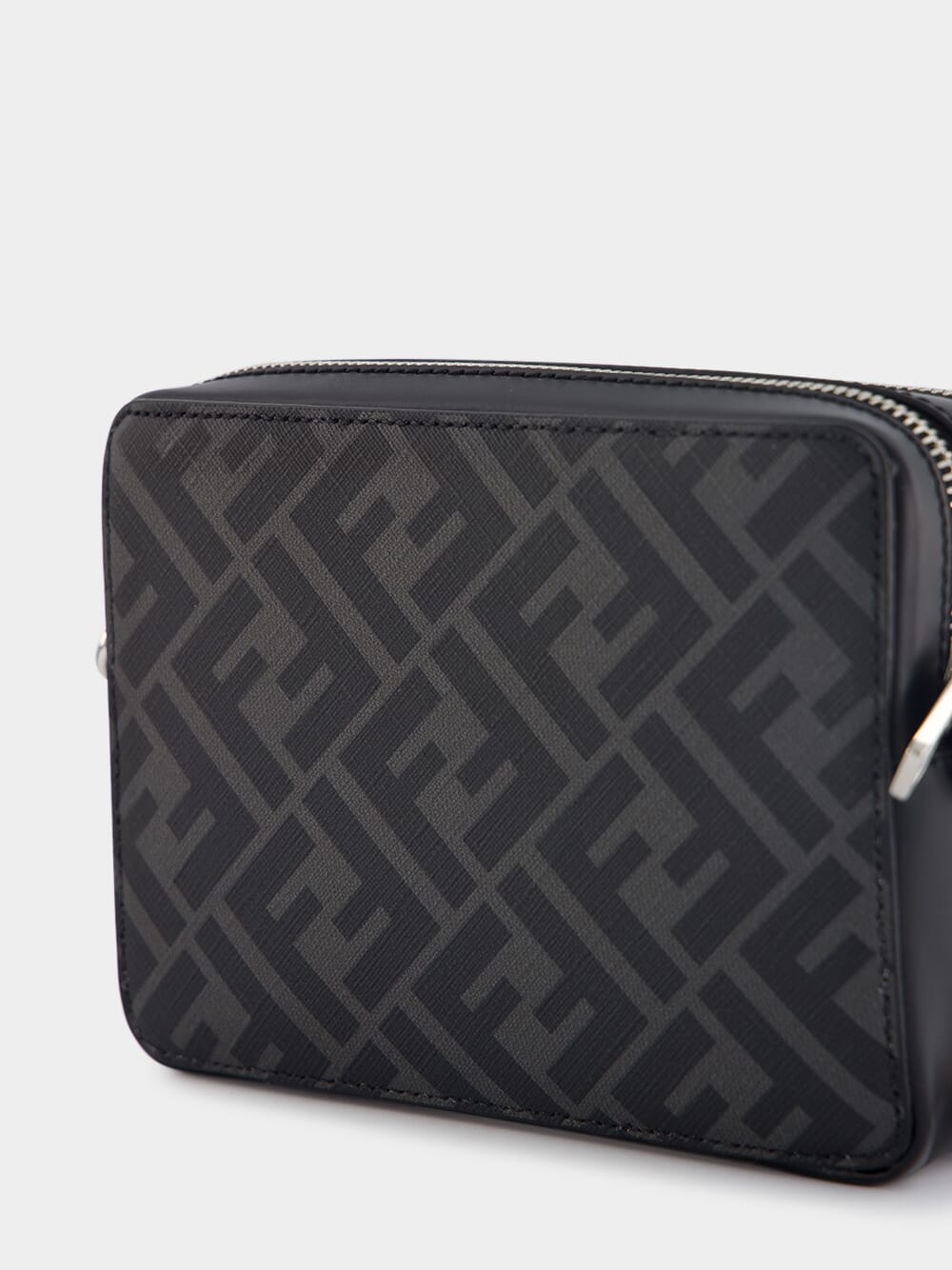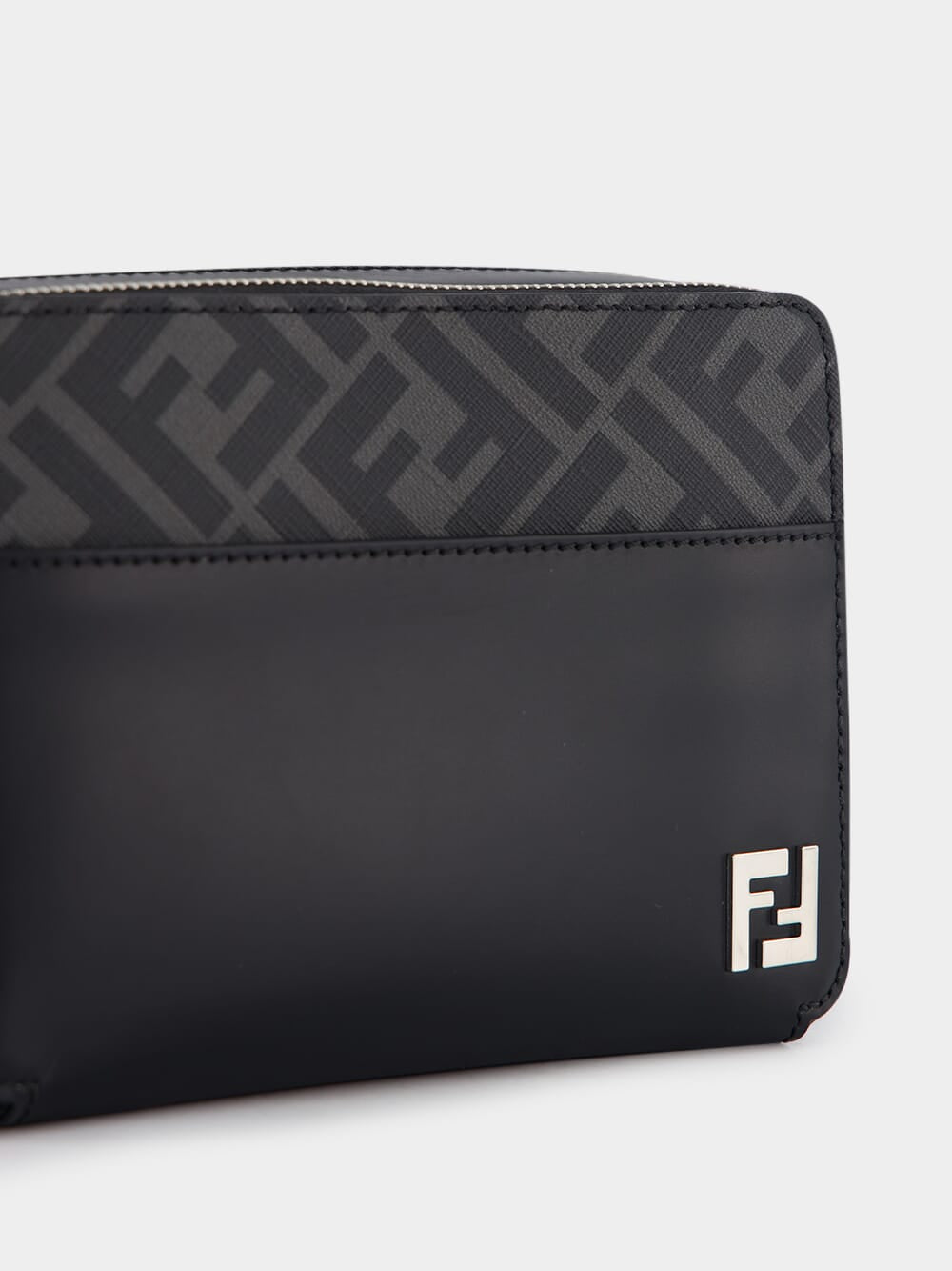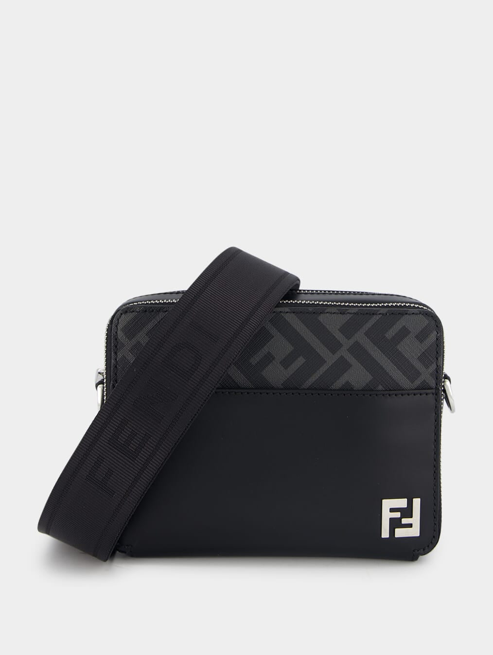 FF-Plaque Leather Messenger Bag, adorned with an eye-catching FF-logo print and monogram pattern. The iconic FF logo plaque takes center stage, complemented by sleek silver-tone hardware. Experience seamless access with the all-around zip fastening and top zip closure. The adjustable shoulder strap ensures a comfortable fit, while the partitioned compartment adds practicality to its striking design.