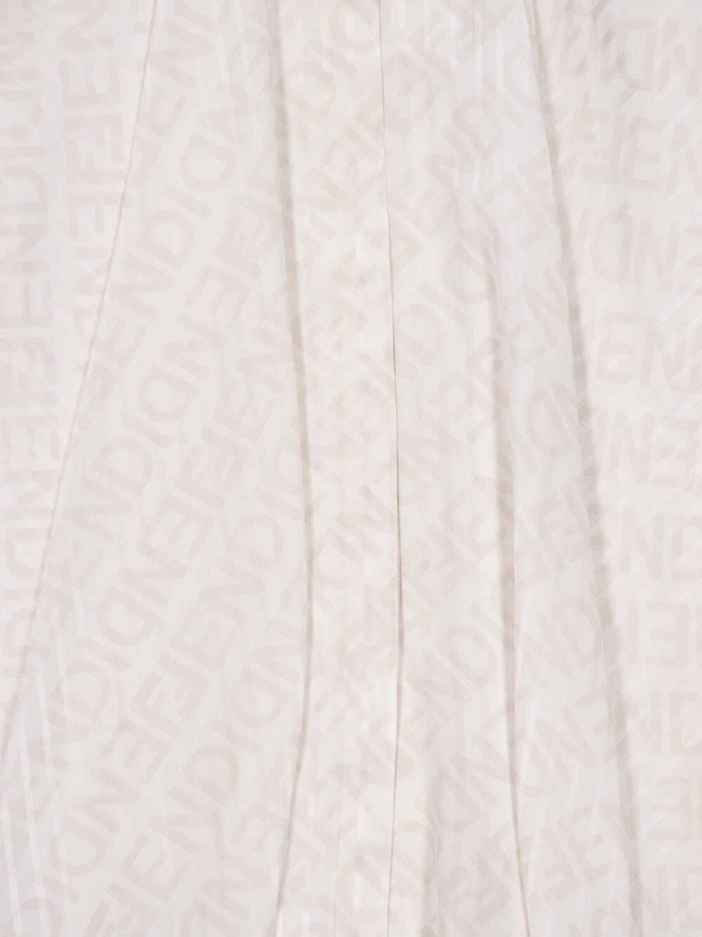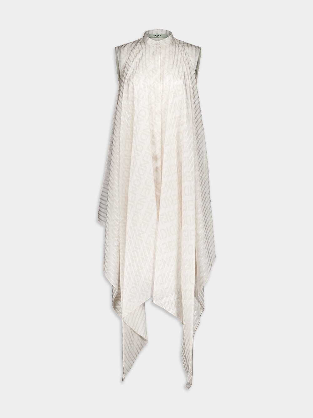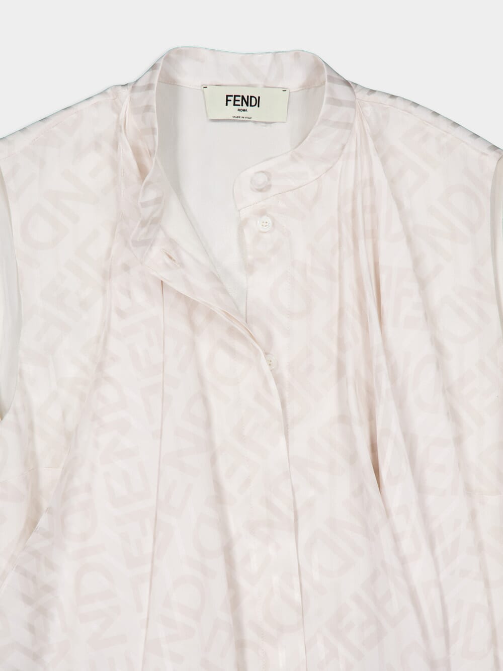 Logo Printed Dress, crafted from pure silk satin with a logoed print covering the entire surface. This stunning dress features a concealed buttons closure at the front, adding a touch of elegance. Unlined for a lightweight and comfortable feel, it exudes sophistication and chic appeal.