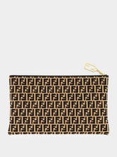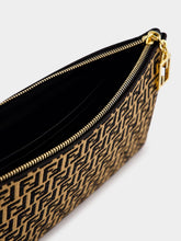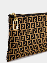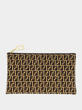 Medium Flat Raffia Pouch, a chic and versatile accessory for any occasion. Crafted from natural raffia, this pouch features an elegant white chenille mini FF motif, adding a touch of sophistication to your look. The zip closure ensures secure storage, adorned with the iconic FF Baguette zip pull in gold-finish metalware.