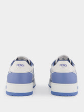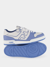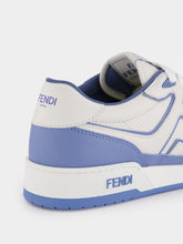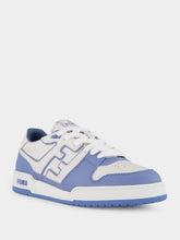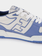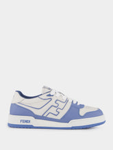 These Fendi Match lace-up sneakers feature a stylish combination of light blue and white leather. The design includes a rubber sole with Fendi lettering on the side, offering a sporty and sophisticated look. Perfect for casual wear, these low-tops provide both comfort and elegance.