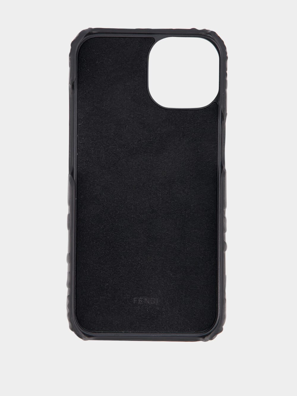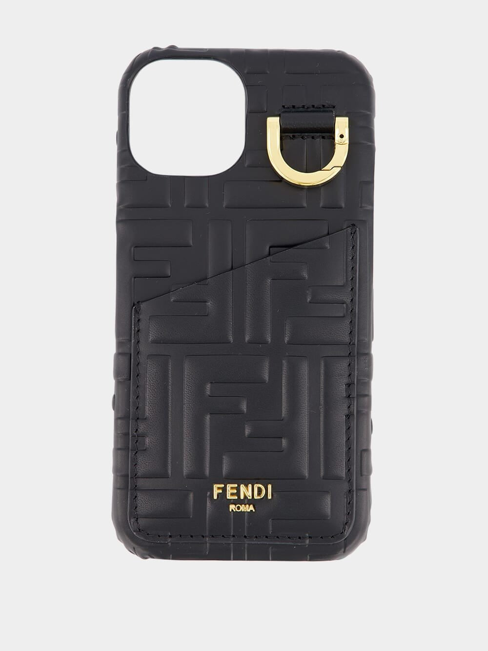 The epitome of style and protection for your iPhone® 14. Crafted from luxurious black leather adorned with an embossed FF print, this case combines fashion and functionality. The gold-finish metalware adds a touch of opulence, enhancing the overall elegance of your device.