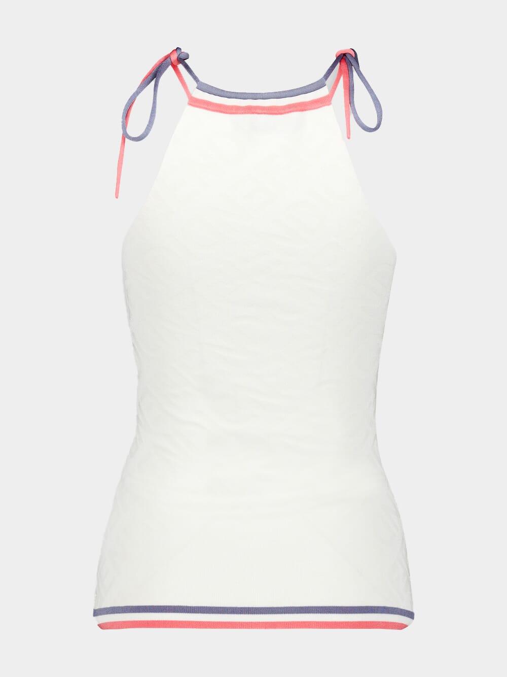 White Tank Top features an halterneck style and sleeveless silhouette that create a modern and chic look. With a straight hem, it offers a flattering and elegant fit making this top a standout piece in your wardrobe.