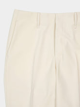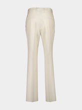 These elegant straight-leg trousers are crafted from luxurious wool gabardine in a refined white shade, offering a timeless and sophisticated silhouette. Designed with a mid-rise waist and belt loops for versatile styling, they feature a concealed zip fastening for a seamless look. The tailored fit and high-quality fabric ensure comfort and durability, making them a perfect choice for both formal and contemporary casual outfits.