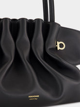 Crafted from luxurious black nappa leather, the Ferragamo Soft-Bag blends archival inspiration with modern minimalism. The clean silhouette is elegantly gathered by signature Gancio pins, creating soft, sculptural folds. Lightweight yet spacious, it’s ideal for daily wear, offering both style and practicality with an elevated Italian touch.