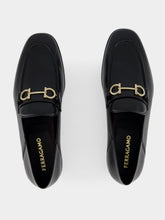 Crafted from soft lambskin, this black moccasin slip-on by Ferragamo blends formal elegance with a relaxed edge. Featuring a squared toe, visible stitching, and a signature gold Gancio bit with a side buckle, it exudes sophistication. Red thread lining adds an exclusive touch, while the foldable heel offers versatile styling. Finished with a flexible leather sole, this Italian-made loafer is perfect for refined yet effortless looks.