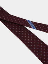 This Ferragamo jacquard tie in an elegant bordeaux tone is crafted from luxurious pure silk. Adorned with a subtle all-over motif in blue and light accents, it adds a refined touch to tailored looks. The intricate weave and lustrous finish highlight the house’s commitment to timeless craftsmanship. Ideal for formal occasions or elevating business attire with understated sophistication.
