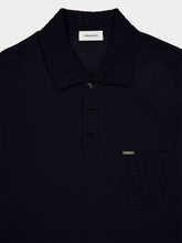 Navy Blue V-Neck Polo with Jacquard Detail