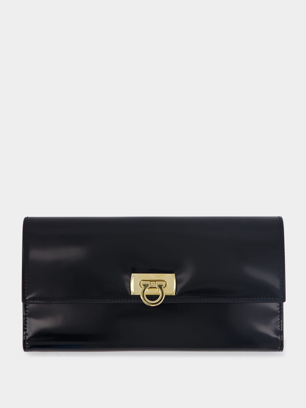 Gancini Continental Wallet, adorned with a captivating gold-tone Gancini buckle. Elevate your style with this exquisite accessory that seamlessly blends fashion and functionality. The wallet's spacious interior offers multiple compartments, ensuring effortless organization for your essentials. Additionally, a convenient zipped coin pocket at the rear adds extra convenience.
