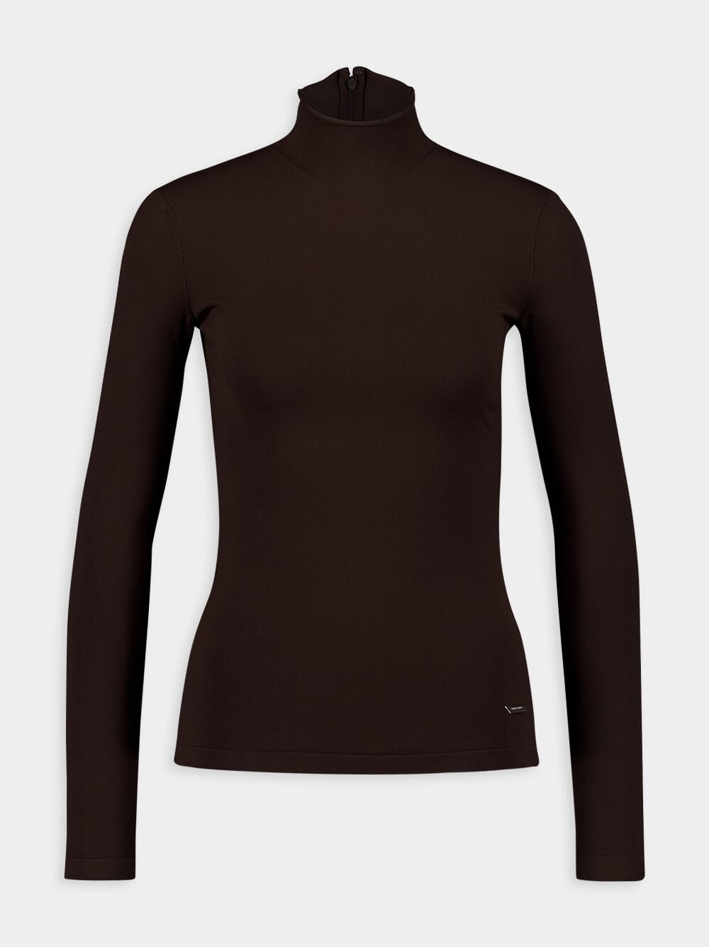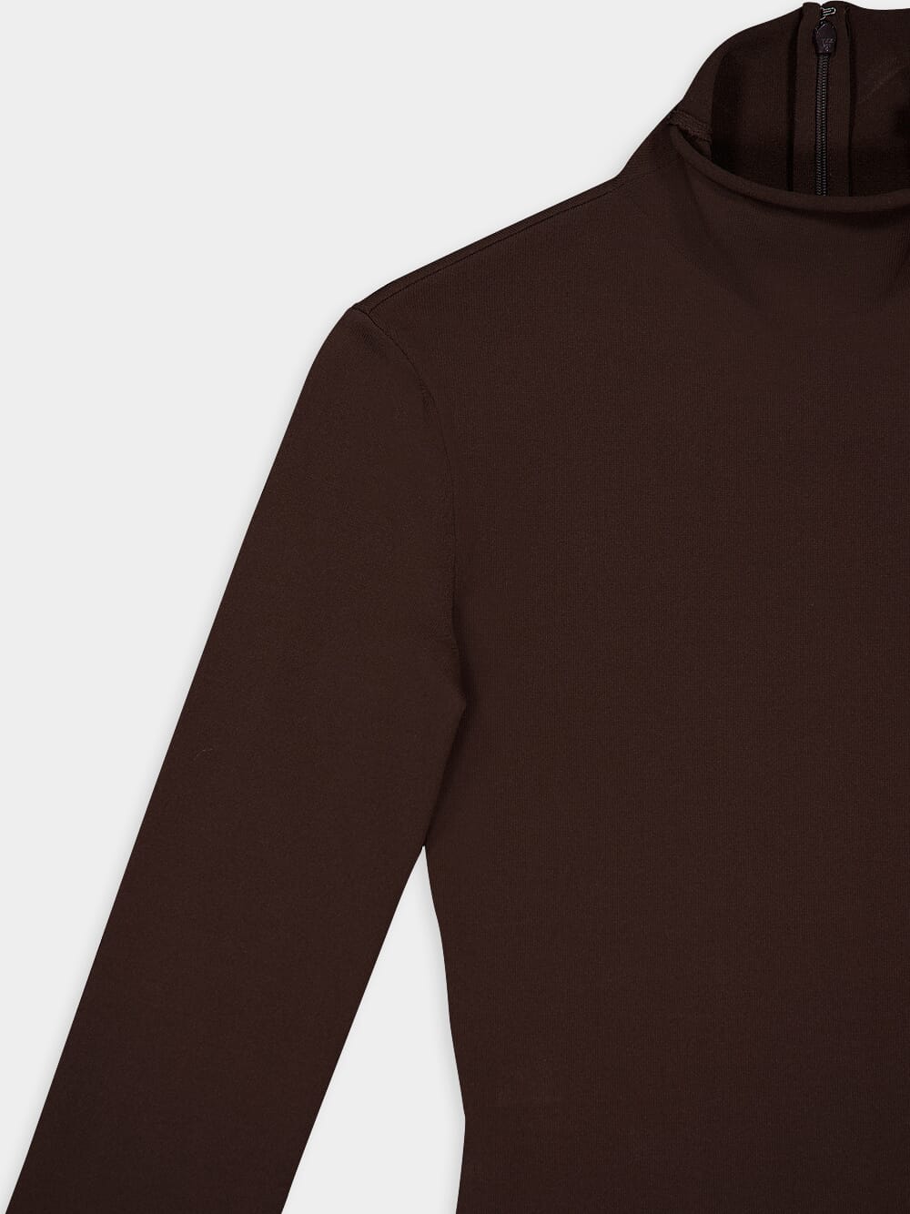 Jersey Turtleneck, a must-have addition to your wardrobe. This slim-fit turtleneck is crafted from a blend of stretch viscose, offering both style and comfort. The clean-cut design exudes sophistication, making it perfect for any occasion. The high collar is elegantly closed at the back with a hidden zip, adding a touch of modernity.