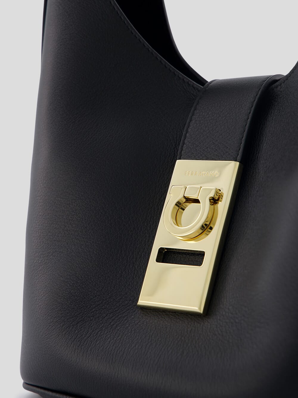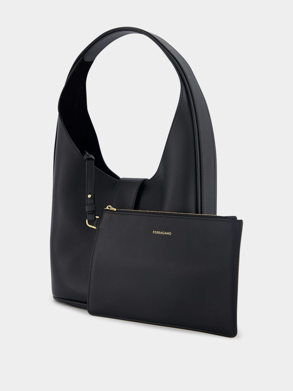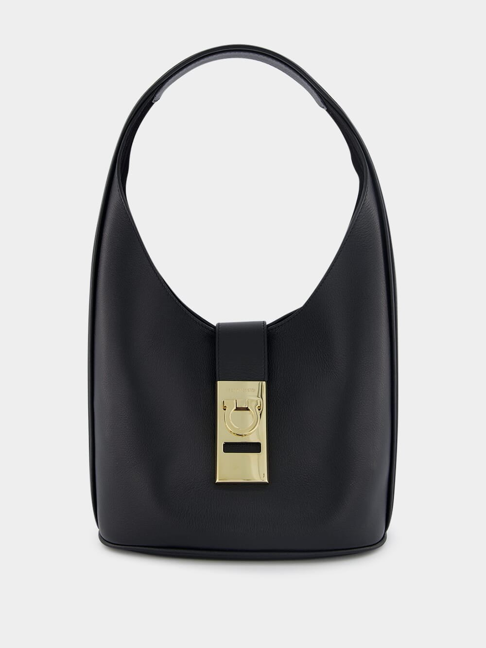 Medium Gancini-Buckle Leather Hobo Bag, boasting a striking Gancini buckle and exquisite grained texture. Secure your belongings with ease using the Gancini flip-lock fastening, while the single flat top handle adds a touch of sophistication. The spacious main compartment ensures effortless organization, accompanied by a convenient removable pouch for added versatility.