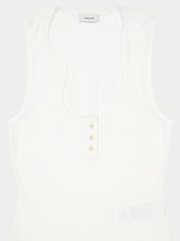 White Ribbed Cotton Vest with Sculpted Neckline