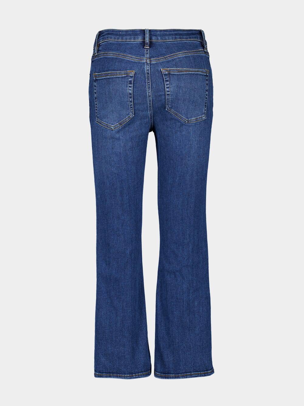 The Le Crop Mini Boot Skygirl Jeans offer a stylish and flattering fit with a classic mid-rise waist and a slim silhouette through the hips. Featuring a subtle bootcut kick at the knee and a chic cropped length, these jeans are perfect for a versatile, modern look. Crafted from a premium stretch cotton blend, they ensure both comfort and a soft, luxurious feel. The faded mid-blue wash adds a touch of casual sophistication, making these jeans ideal for everyday wear or dressing up for a night out.