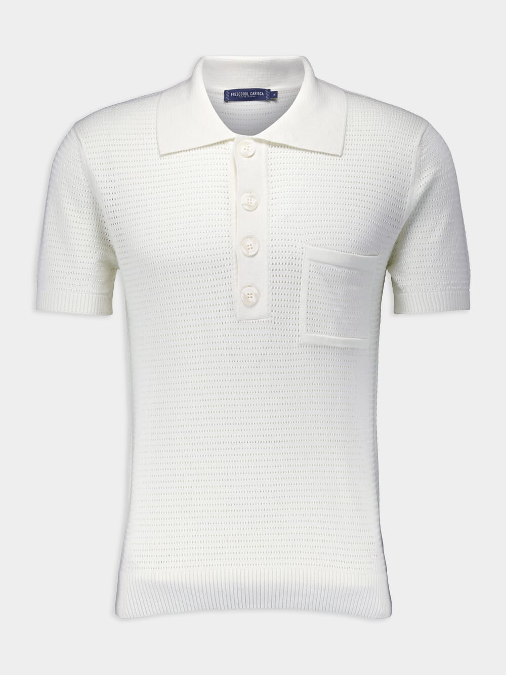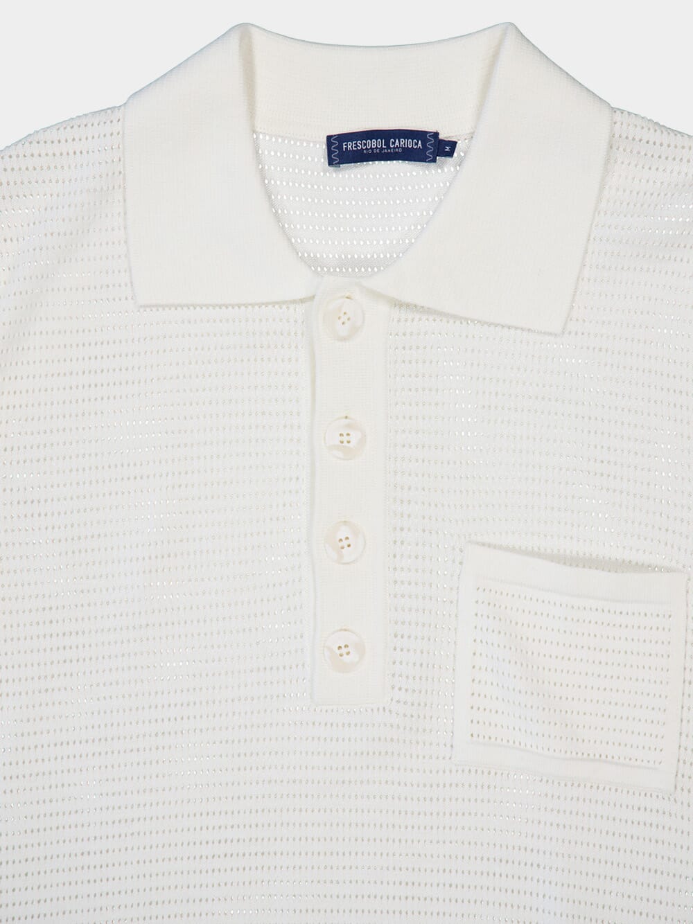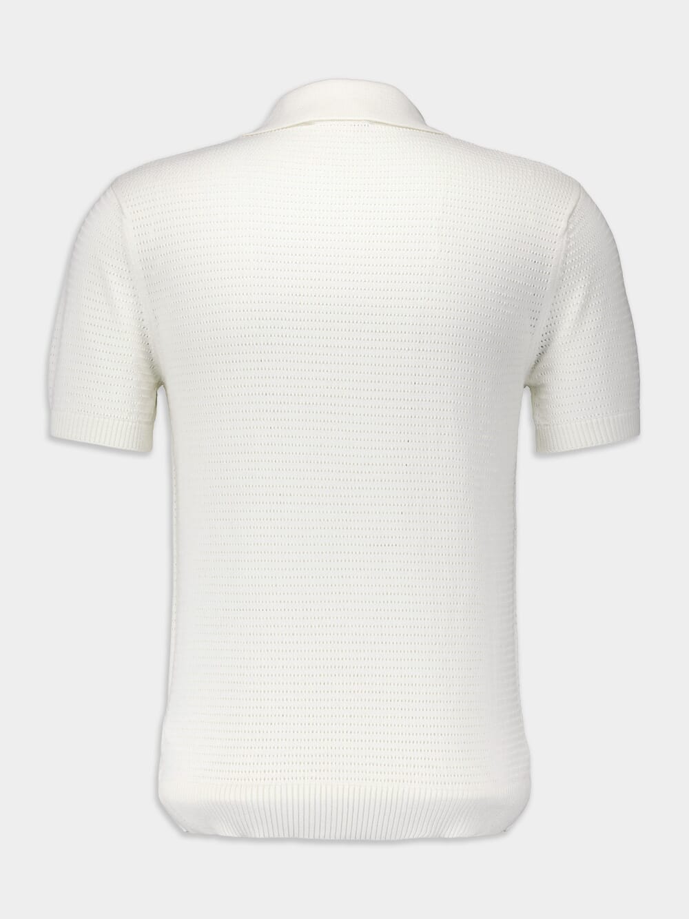 Clemente Knit Polo, a classic wardrobe staple designed for style and comfort. With its regular fit and short sleeves, this polo offers a timeless and versatile look. Crafted with intricate crochet stitch detailing, it adds a touch of elegance to your ensemble. The half-placket fastening adds a modern twist to this traditional piece.