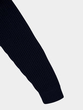 The Maximo half-zip knit sweater is made from 100% cotton, featuring a heavier-weight thread with an open chain stitch for added breathability. Designed in navy, it has a casual metal ring pull detail on the half-zip, adding a modern touch. Ideal for layering during cooler months or wearing as a stand-alone piece on breezy days. This versatile and luxurious sweater is perfect for casual and refined looks alike.