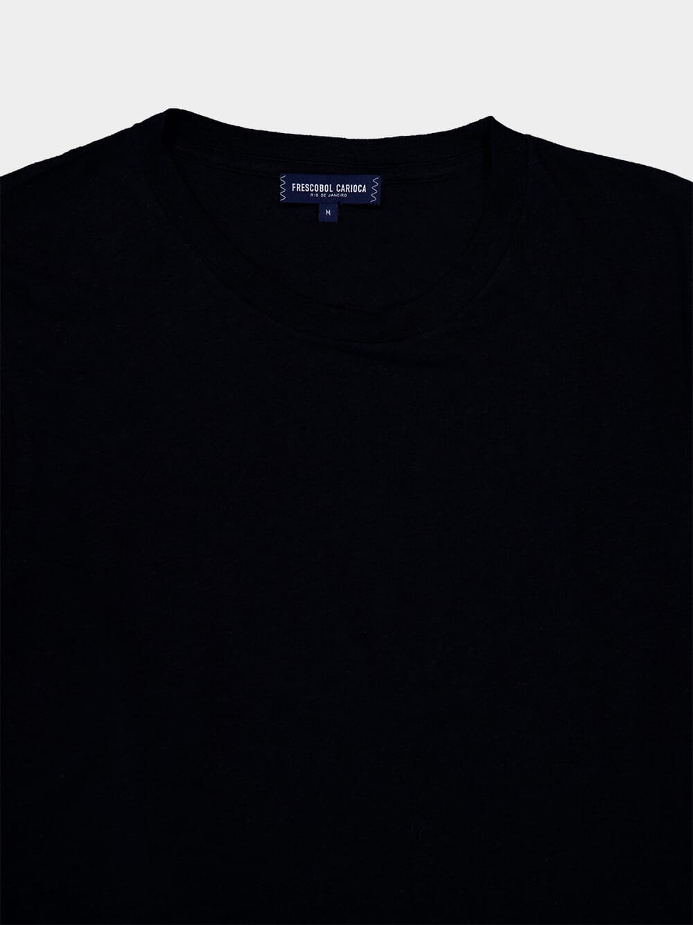 Frescobol Carioca Lucio short sleeved cotton blend t-shirt in black.