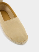 Experience casual elegance with the Helio suede espadrilles, perfect for leisurely days. Designed with a convenient heel loop tab for easy slip-on wear, they feature a classic woven-jute midsole and a durable rubber sole for a timeless yet practical summer staple.
