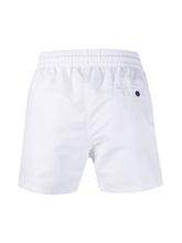 Frescobol Carioca white cotton swim shorts with elasticated and drawstring waist.