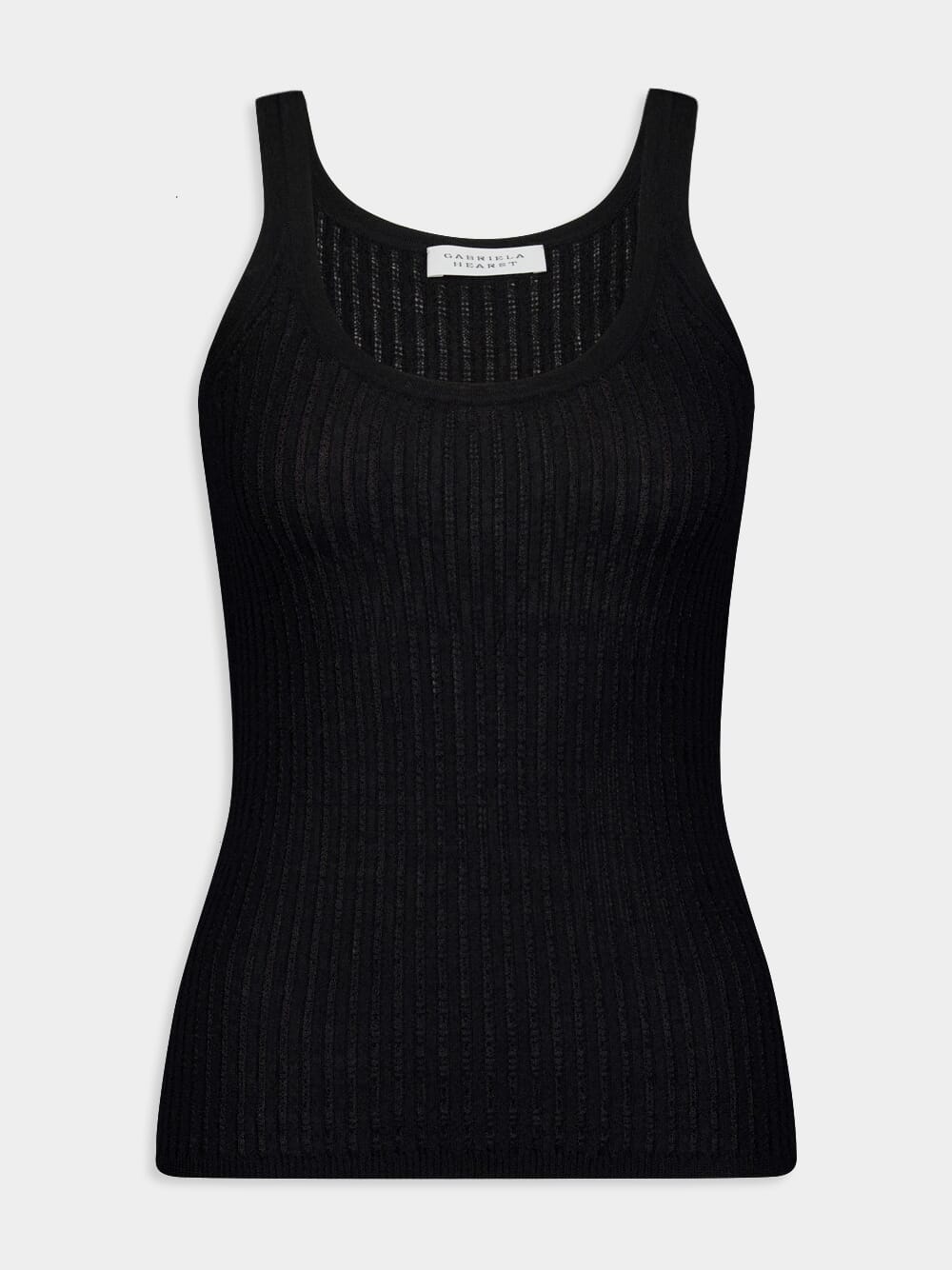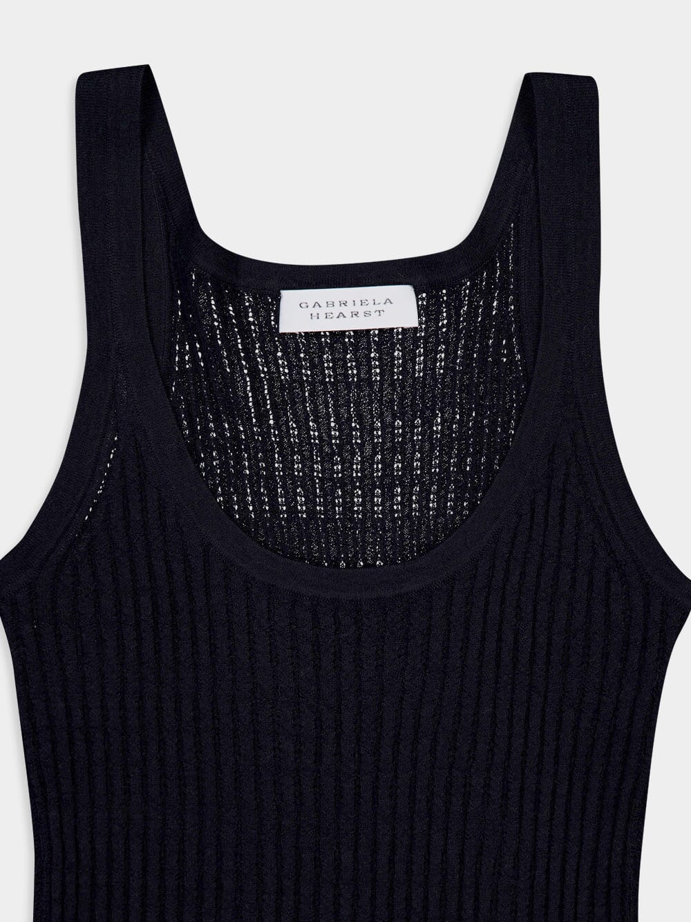 Nevin pointelle-knit cashmere and silk-blend tank top, expertly crafted from fine Italian cashmere and silk yarns. The open pointelle stitch intricately contours your figure, offering a blend of comfort and elegance. Effortlessly slip into this tank for a seamless addition to your wardrobe.