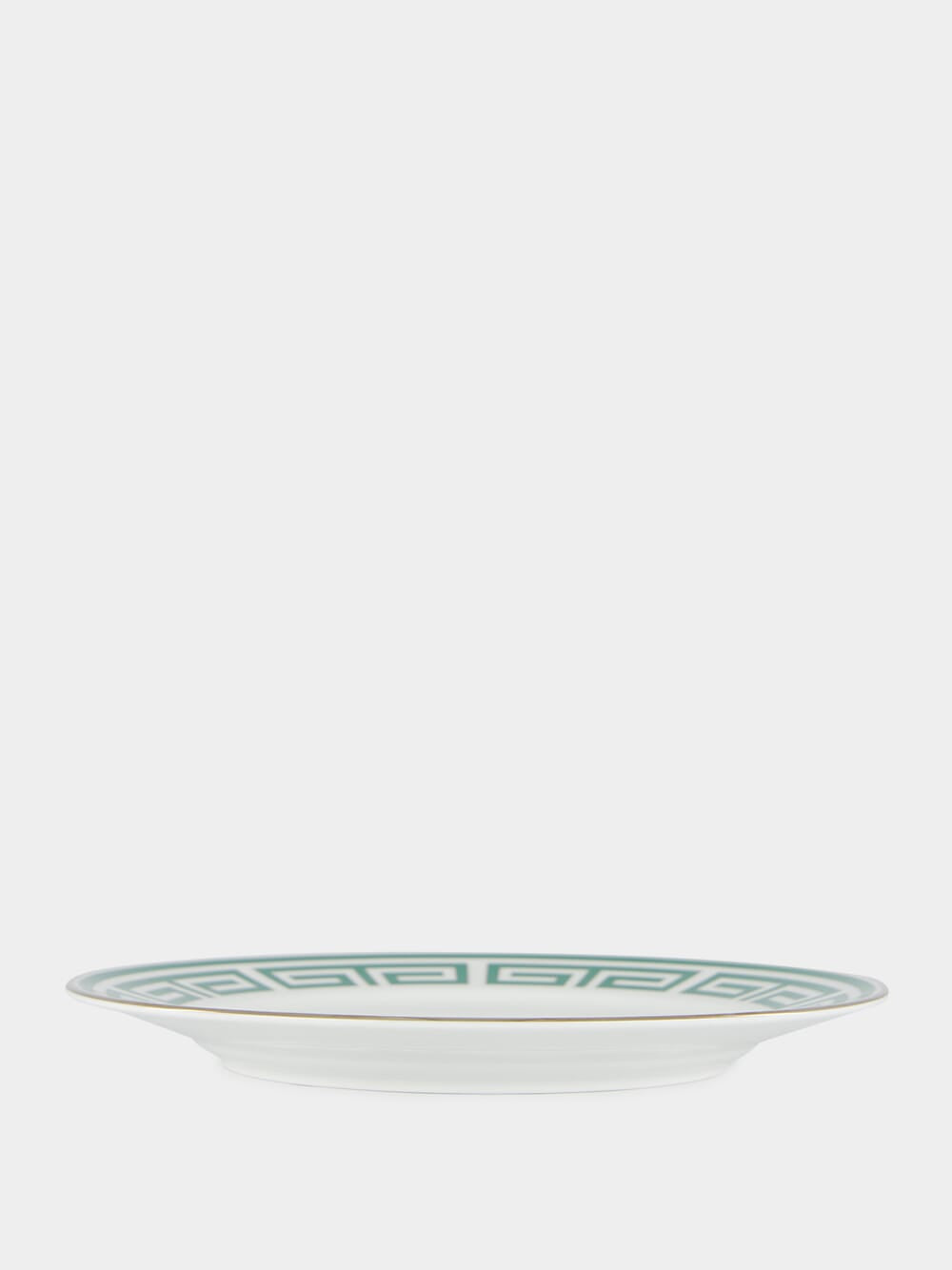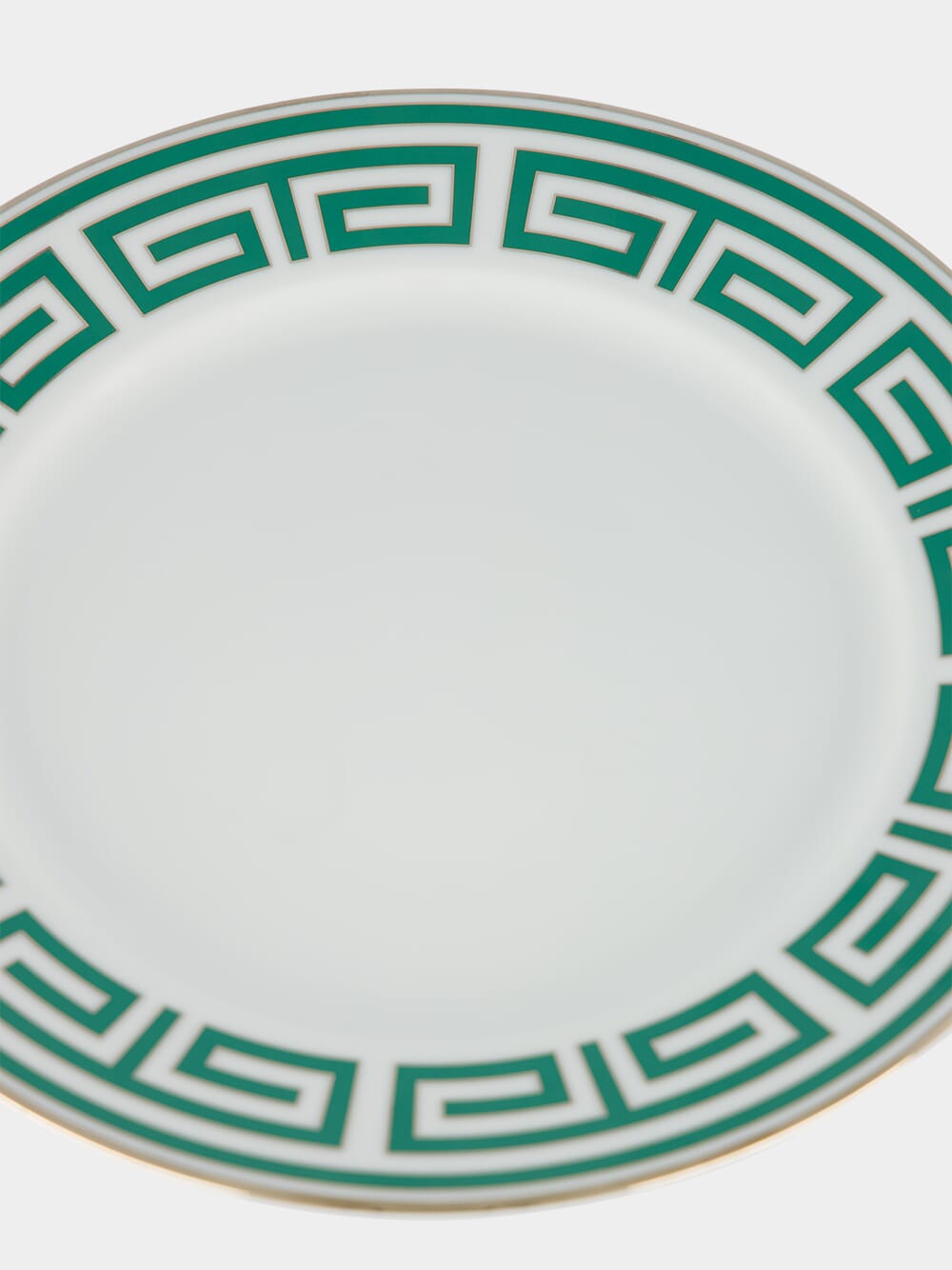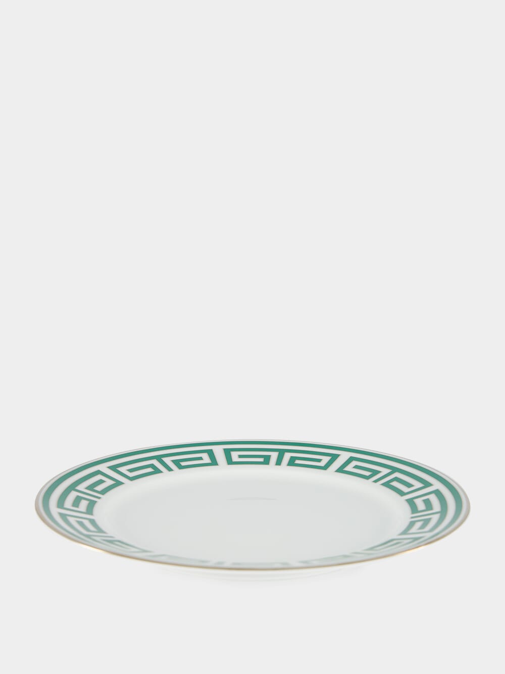 Dinner Plate Labirinto Smeraldo from Richard Ginori, a masterpiece of timeless elegance. This exquisite dinner plate showcases a captivating geometric print, adding a touch of sophistication to your dining experience. The two-tone design exudes modern charm, while the delicately painted edge adds a refined finishing touch. Handcrafted with precision by skilled artisans, each plate promises exceptional quality and durability.