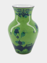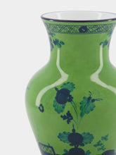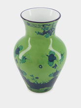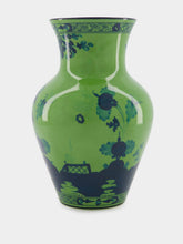 The Malachite Ming vase from the Oriente Italiano collection is a collectible piece of art, hand-decorated with a floral motif on malachite green porcelain. Designed for floral displays, it enhances any ambiance and pairs seamlessly with the collection’s array of tableware, embodying Ginori 1735's oriental allure.