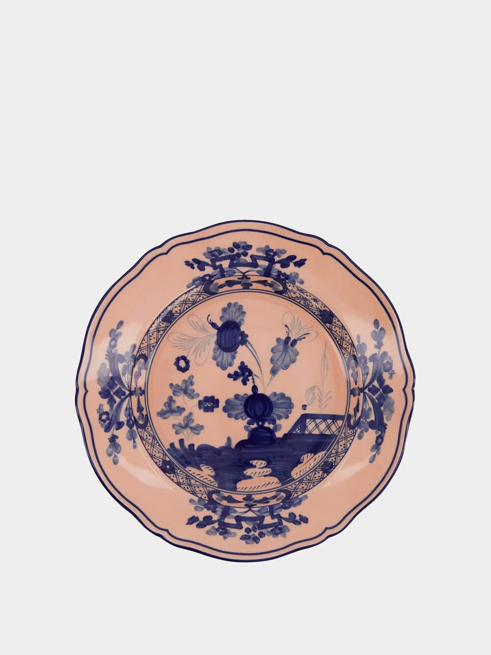 Ginori 1735 Oriente Italiano Cipria porcelain flat dessert plate in Antico Doccia shape.