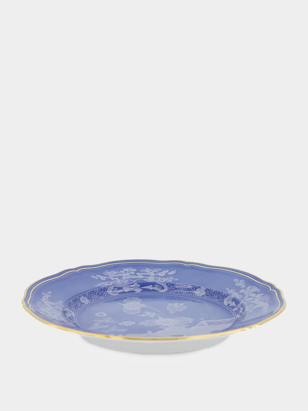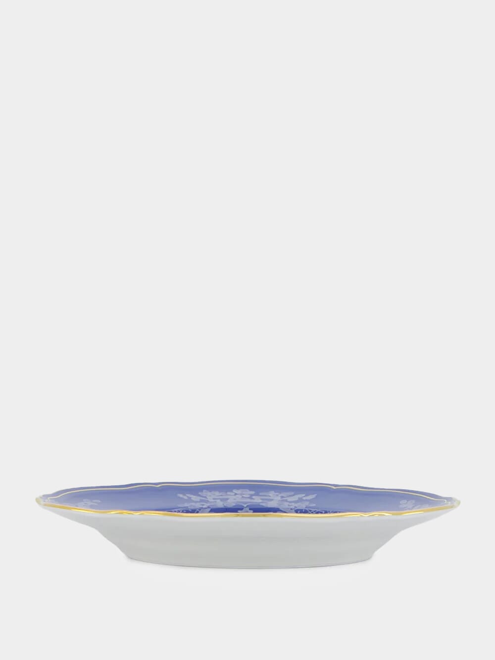 Oriente Italiano Pervinca porcelain flat dessert plate in Antico Doccia shape.