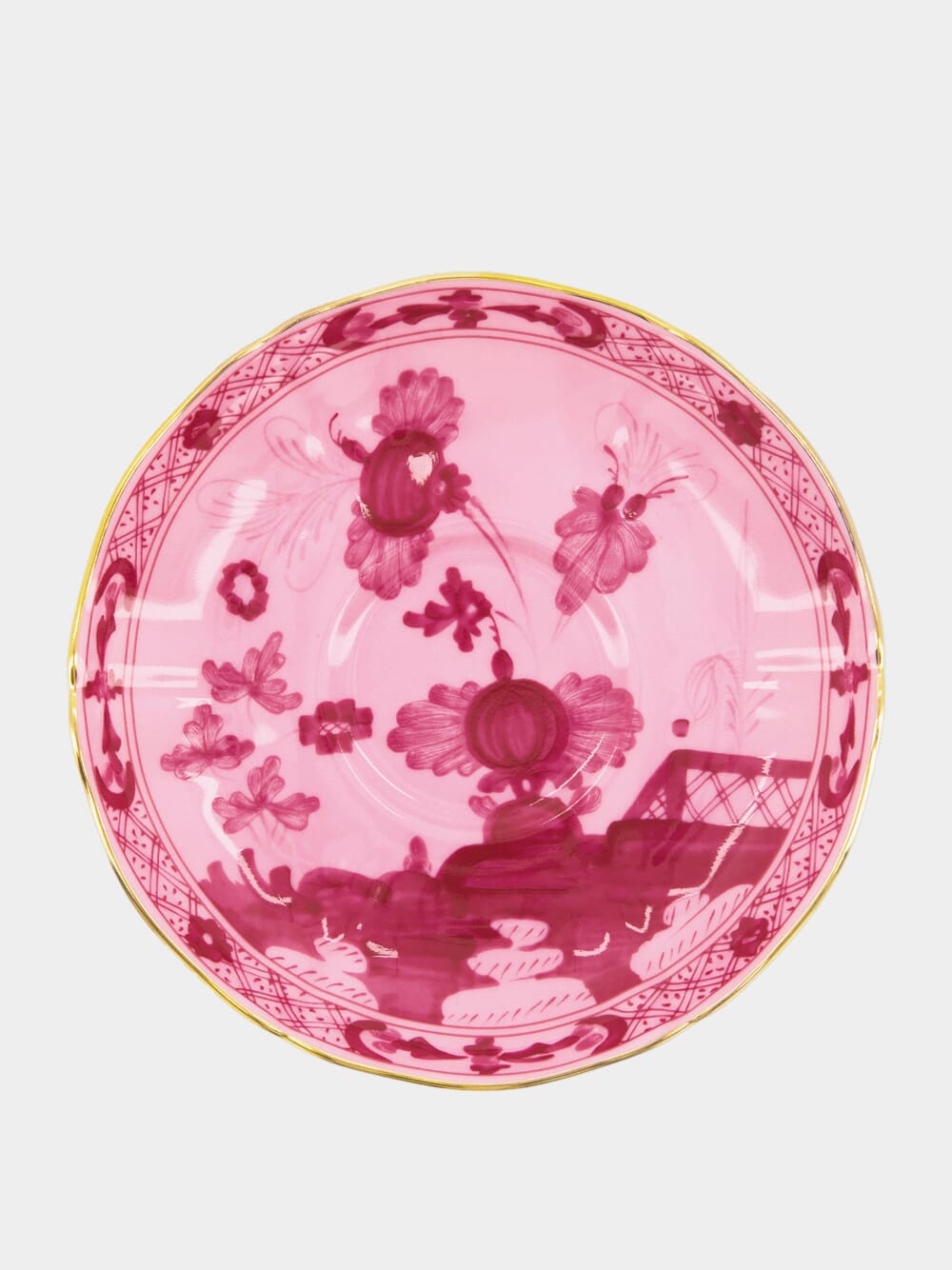 Oriente Italiano Porpora tea saucer by Richard Ginori is meticulously handcrafted and adorned with intricate patterns, embodying the timeless beauty that defines Richard Ginori. With its delicate curves and refined design, it adds a touch of sophistication to your tea ritual.