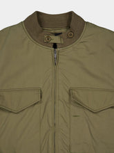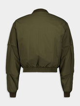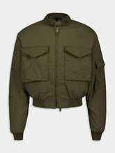 Infuse your style with a dose of edgy charm in this cropped bomber jacket. Made from a supple cotton blend, it offers a buttoned collar, a secure zipped closure, and multiple pockets for functionality. Ribbed elastic knit elements at the collar and cuffs, combined with an elastic hem, ensure a snug fit, while a gusset at the back provides added comfort. Its cropped silhouette makes it a versatile layer for both casual and chic occasions.