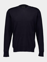 This refined night blue sweater is a luxurious blend of cotton and silk, offering both comfort and elegance. It features long sleeves, a classic crew neck, and a small 4G emblem embroidered on the front. The ribbed collar, hem, and cuffs add a touch of sophistication to this versatile piece, making it perfect for both casual and formal settings.