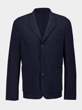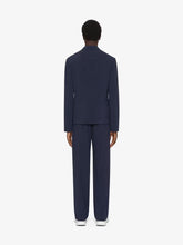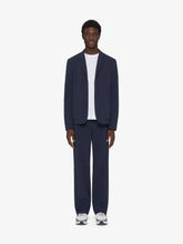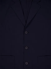 This sophisticated night blue travel jacket is crafted from stretch synthetic fiber, designed for the modern traveler. It features a notch lapel and a small 4G emblem embroidered on the left sleeve, adding a touch of elegance. The button closure ensures a classic fit, while two front pockets and an inside zipped pocket provide ample storage. The wrinkle-free material makes it ideal for maintaining a polished look during travels.