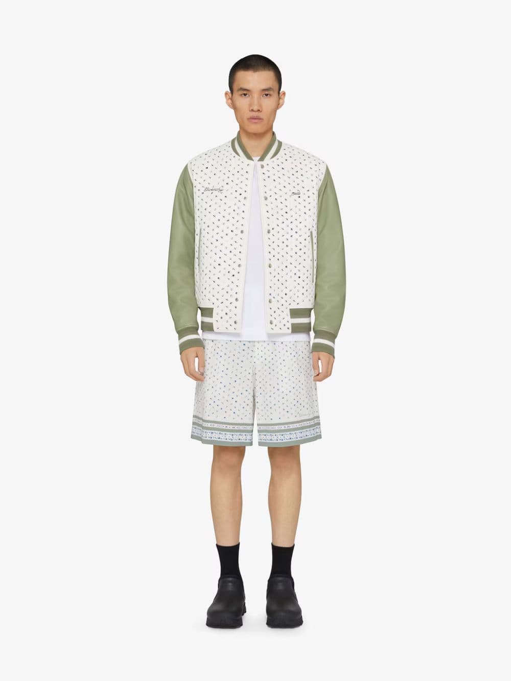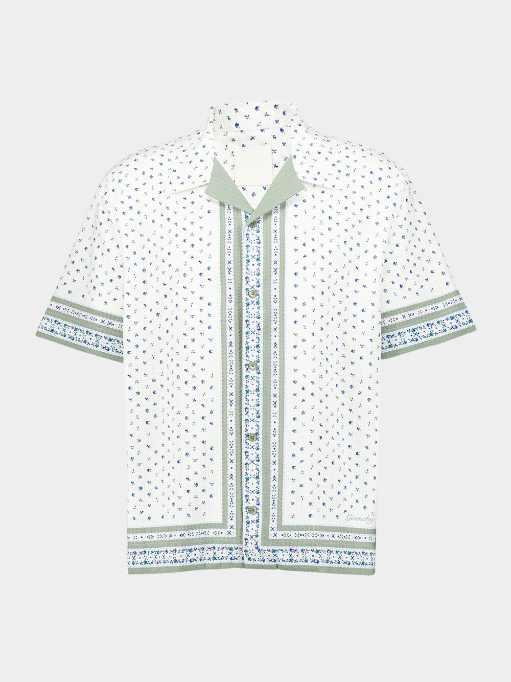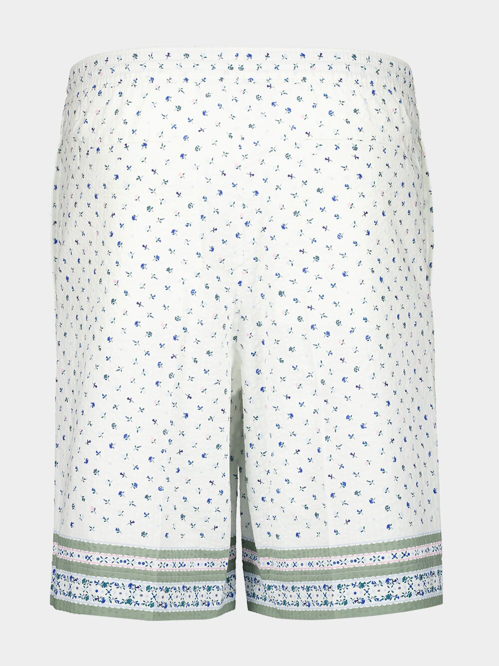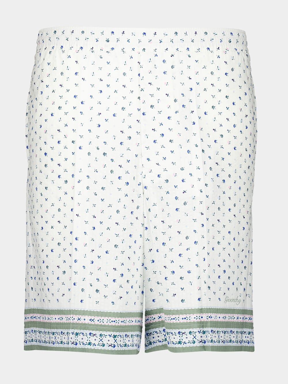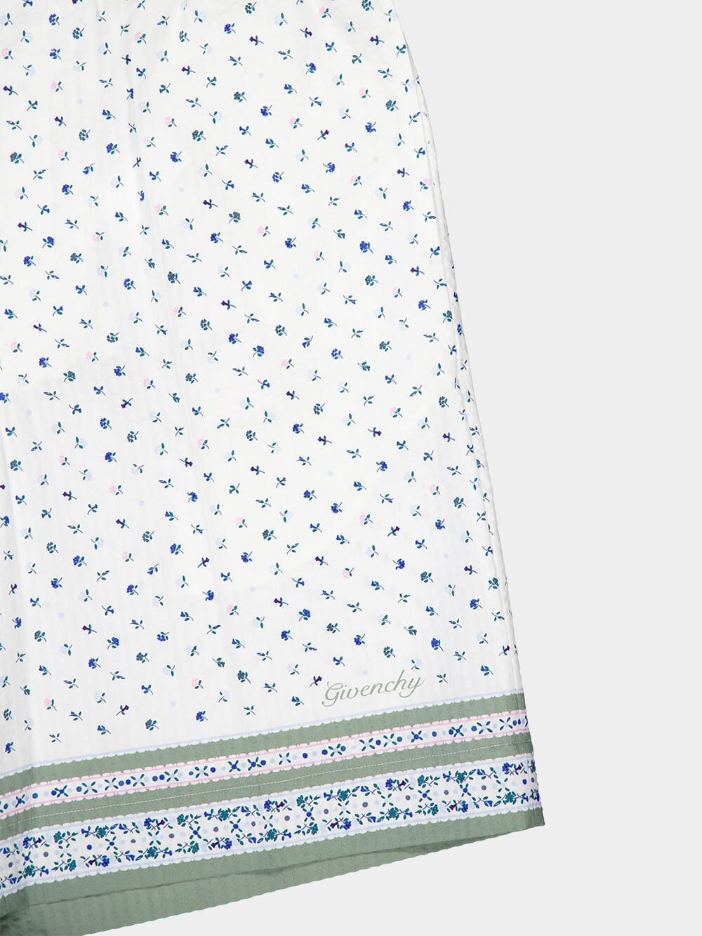 These printed Bermuda shorts are crafted from lightweight cotton seersucker, featuring an elastic waist for comfort. The shorts showcase a charming polka flower print and a small GIVENCHY signature on the left leg. Complete with two side pockets and two back pockets for practicality.