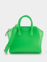 Mini Antigona Bag in Box Calfskin Leather from the iconic Antigona line. This versatile mini handbag or crossbody boasts a secure zipper closure featuring the GIVENCHY 4G zipper pull and a pentagonal patch adorned with a golden debossed GIVENCHY signature. Crafted with leather handles and an adjustable, removable leather strap. The golden-finish metal details add a touch of luxury, while the interior features one main compartment with two flat pockets and a zippered pocket for easy organization.