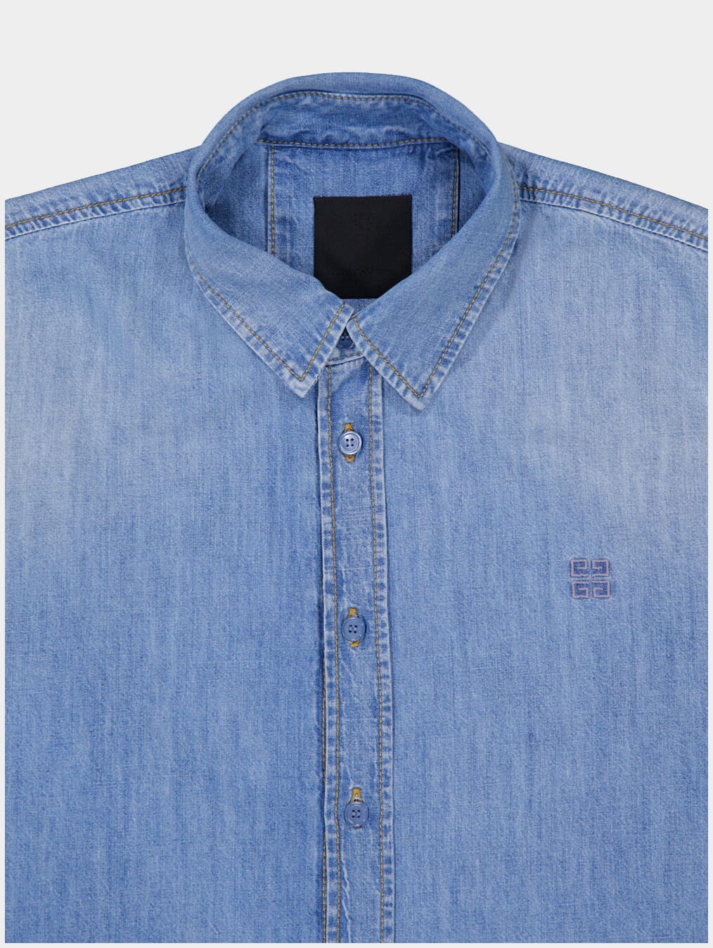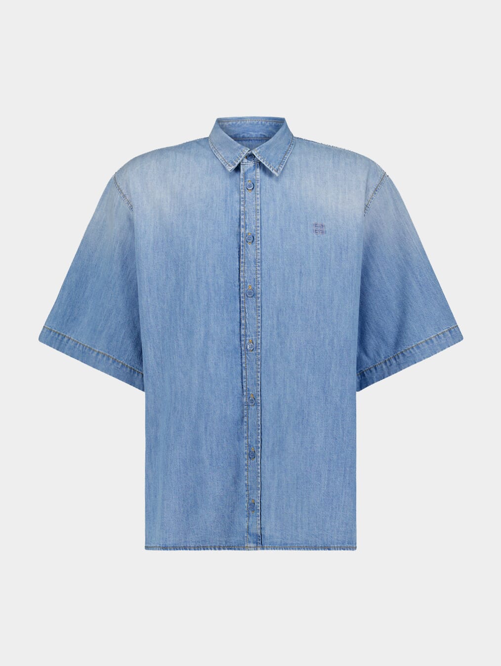 Denim Shirt, crafted from vintage washed denim, this short-sleeved shirt exudes effortless charm. Featuring a classic collar and button closure, its classic fit ensures both comfort and sophistication. The small 4G emblem embroidered on the front adds a touch of iconic flair.