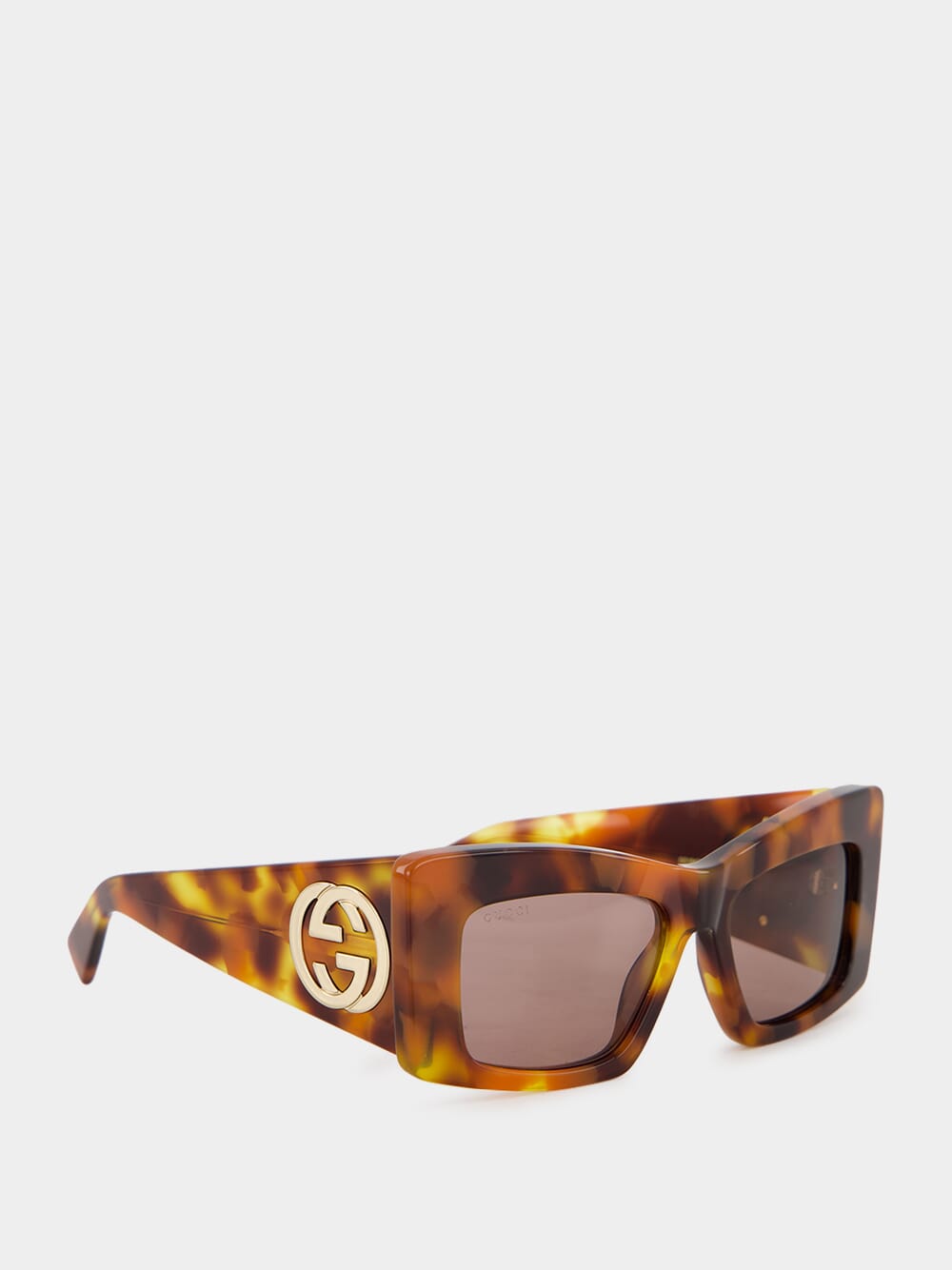 The Light Brown Square Frame Sunglasses from Gucci’s Cruise 2025 collection embody bold sophistication. Crafted with a shiny tortoiseshell acetate frame and temples, they feature an iconic Interlocking G detail on the sides. The solid lilac lenses provide 100% UVA/UVB protection, blending practicality with luxury. Made in Italy, these sunglasses come with a signature Gucci Rosso Ancora red eyewear case, ensuring style and functionality in one elevated design.