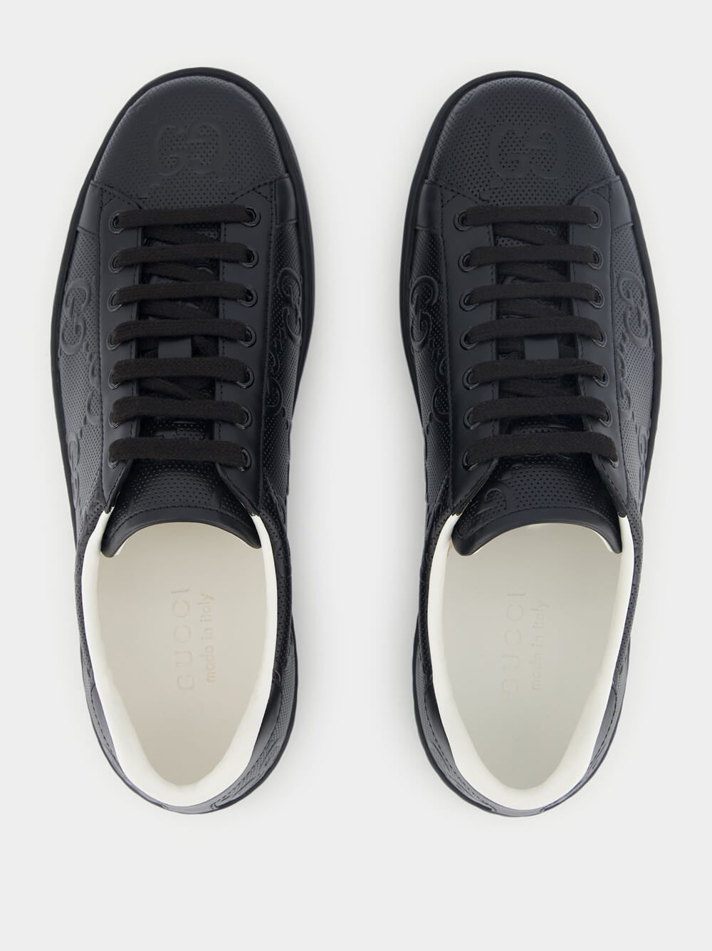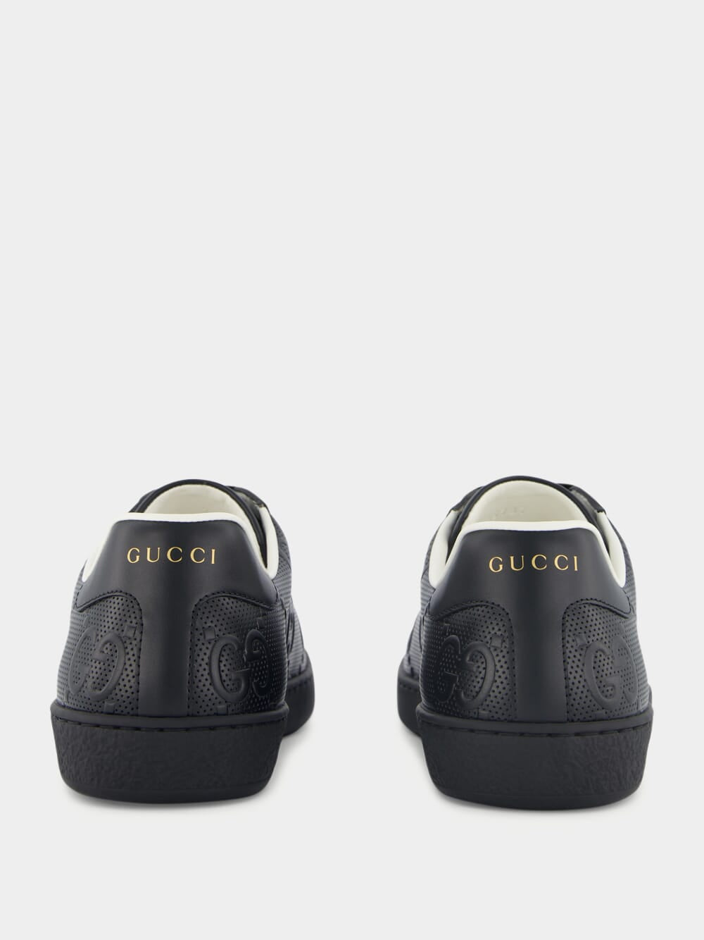 Ace GG Embossed Sneaker, feature the iconic Gucci logo at the back, showcasing impeccable craftsmanship. With an additional pair of laces included, you have the freedom to personalize your look. Please note that these shoes run big, so we recommend sizing down one size for the perfect fit.