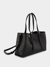 This elegant black GG tote bag is crafted in Arabella leather, featuring a subtle embossed monogram pattern. It includes two removable handles—short for hand carry and a long adjustable strap for shoulder or crossbody wear. Functional and refined, it offers versatility and timeless style, ideal for both everyday use and elevated occasions.
