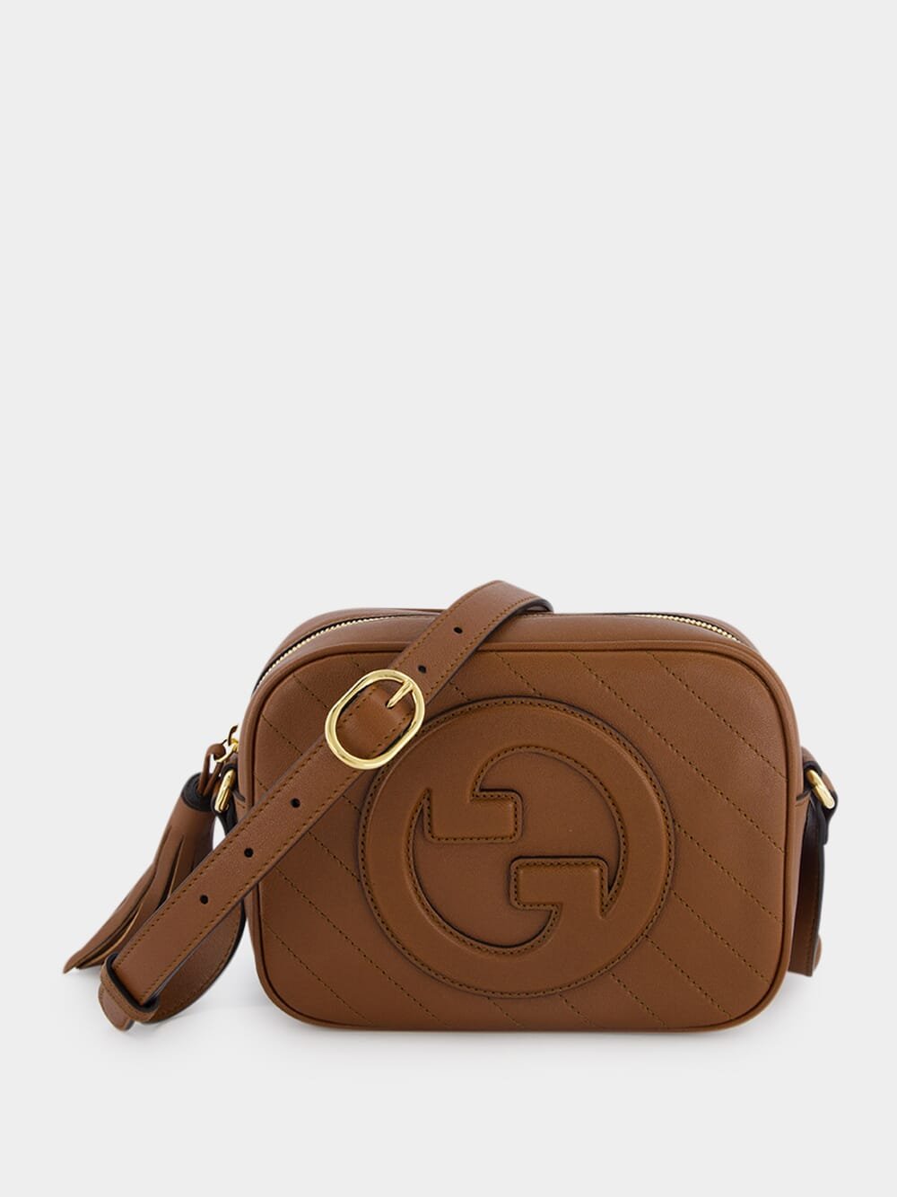 Gucci Blondie Small Shoulder Bag, features a round Interlocking G leather patch, this bag showcases the iconic Gucci logo with pride. The side tassel detail adds a playful touch to its design. With a convenient shoulder strap offering a 54.5cm drop, this bag can be worn comfortably on your shoulder. The zipper closure ensures the security of your belongings.