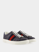 These iconic Ace sneakers from Gucci are reimagined in blue GG Supreme canvas, delivering a refined twist on a classic silhouette. Enhanced with signature blue and red Web stripes, a tonal rubber sole, and a metallic 'ACE' tag at the laces, they blend heritage aesthetics with a contemporary edge. Leather details and lining complete this luxurious low-top design, ideal for elevated everyday wear.