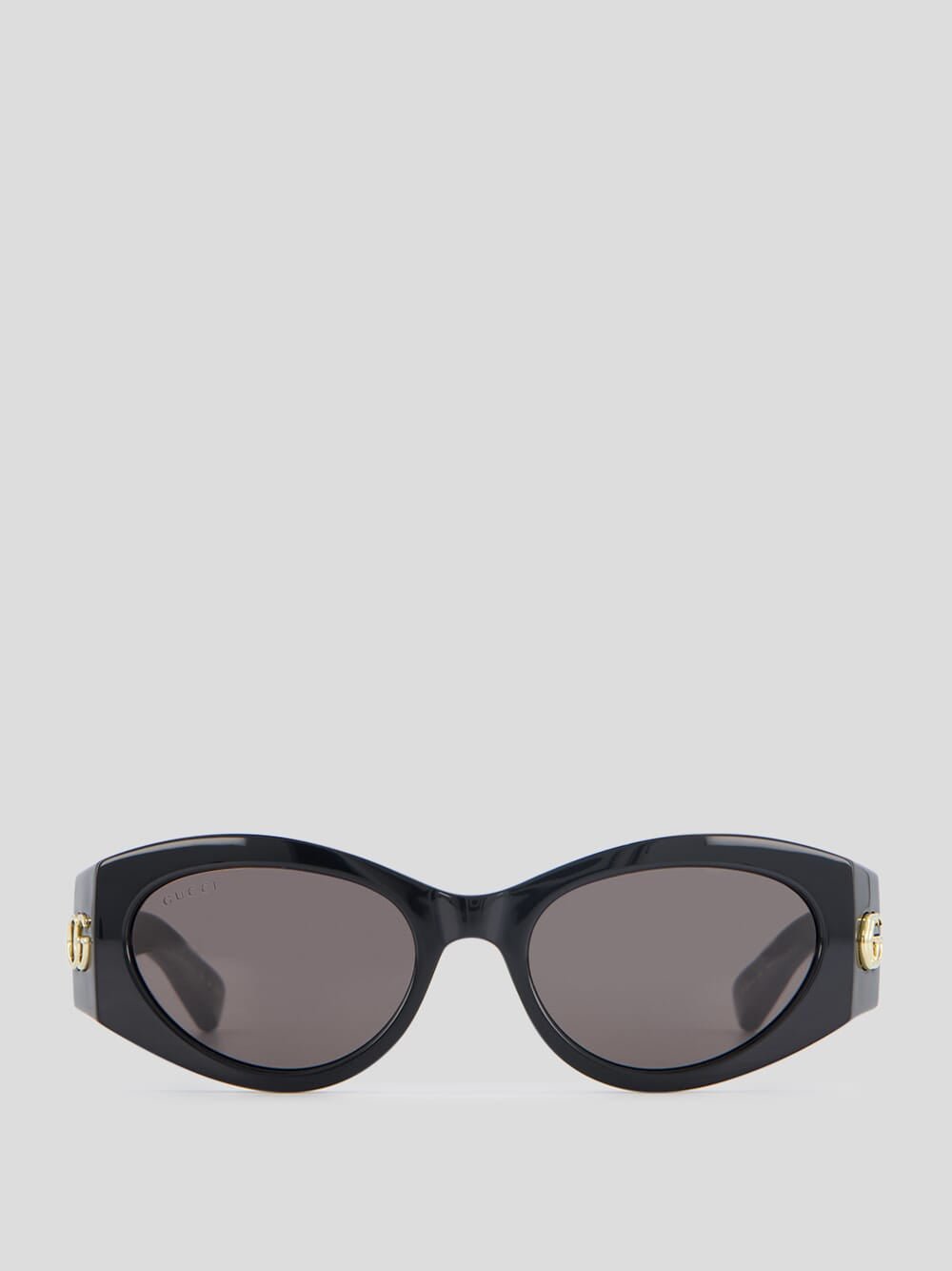 Cat-Eye Frame Sunglasses, a must-have accessory for the fashion-forward individual. These sunglasses feature a sleek cat-eye frame design that exudes timeless style and sophistication. The shiny black acetate temples are adorned with the iconic Double G logo, adding a touch of elegance. The solid grey lenses provide optimal UV protection while offering a chic and versatile look.