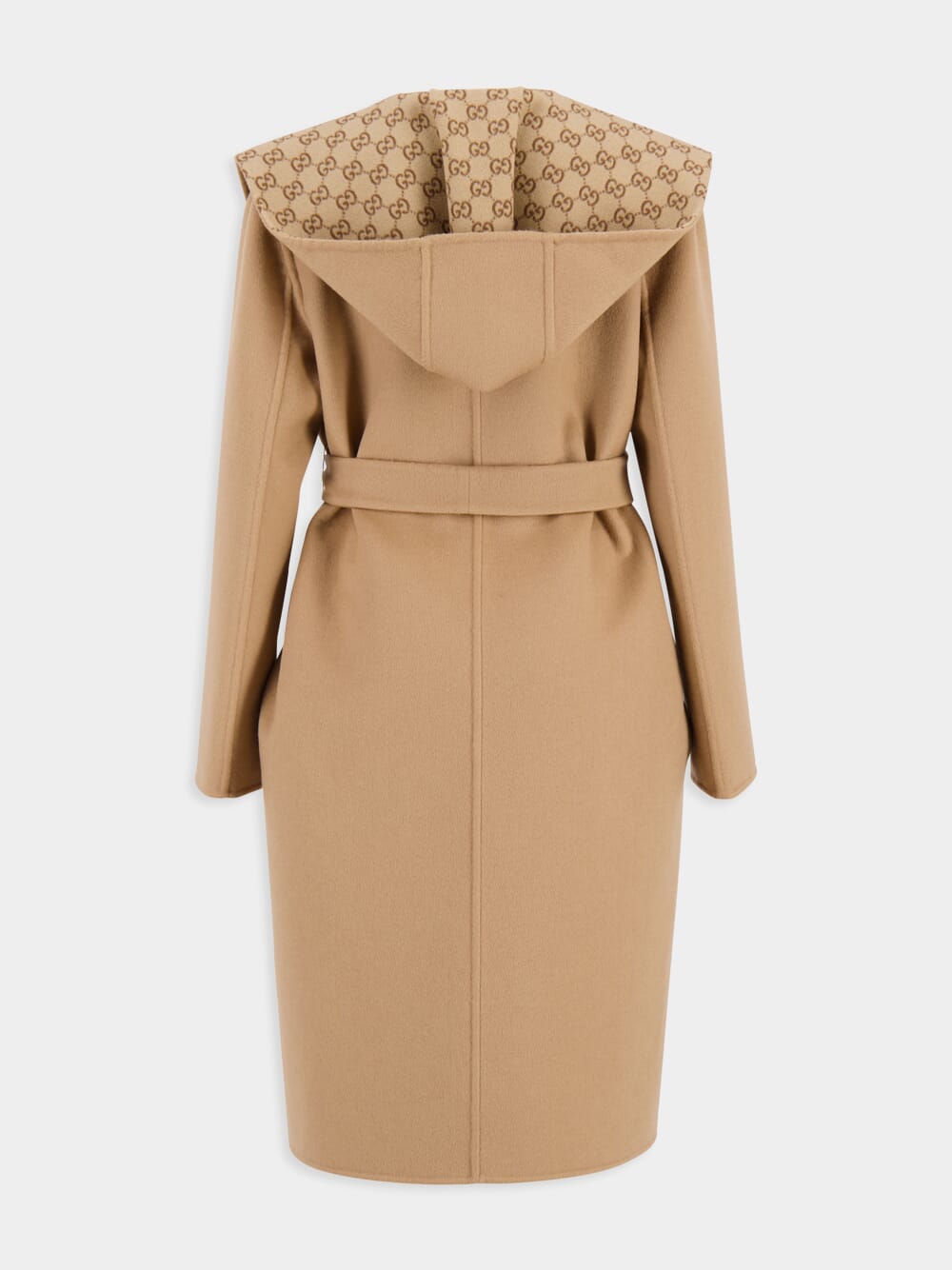 This luxurious reversible coat by Gucci, crafted in Italy, combines elegance and versatility for the colder season. One side showcases a smooth camel silk-wool blend, while the reverse reveals Gucci's iconic camel and ebony GG monogram pattern. A detachable, reversible self-tie belt allows for various styling options, while the shawl collar, fixed hood, and dropped shoulders add a relaxed sophistication. With a regular fit and high-quality construction, this coat offers both warmth and timeless style, making it a refined choice for seasonal layering.