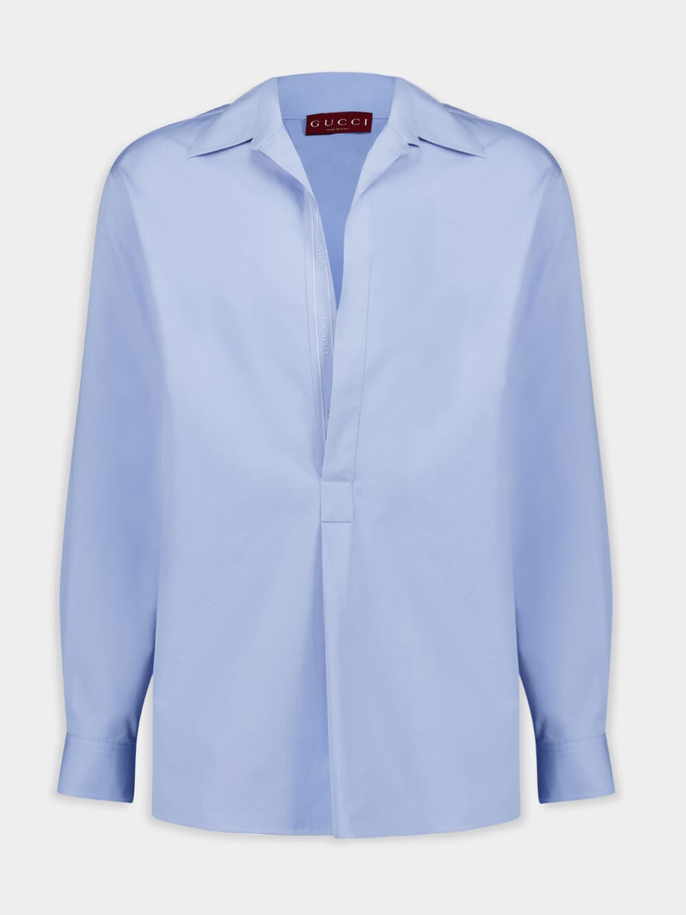 Inspired by the summer spirit and beach clubs on the Italian coast, these light blue cotton poplin shorts are part of Gucci Lido. Crafted from crisp cotton poplin, they feature belt loops, side pockets, and a tailored fit. Perfect for a sophisticated summer look.