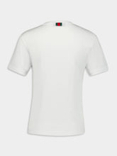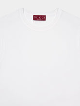 A staple of refined simplicity, this white light cotton jersey T-shirt presents an effortless chic. The green and red Web label at the back lends an iconic touch to this minimalist design. Featuring a round neck and short sleeves, the T-shirt offers a comfortable fit perfect for any casual occasion. Its clean lines and understated elegance make it a versatile addition to any discerning wardrobe.